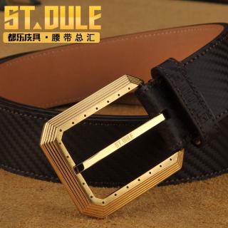 都乐新款休闲针扣黄铜扣进口碳纤纹牛皮皮带男士腰带真牛皮