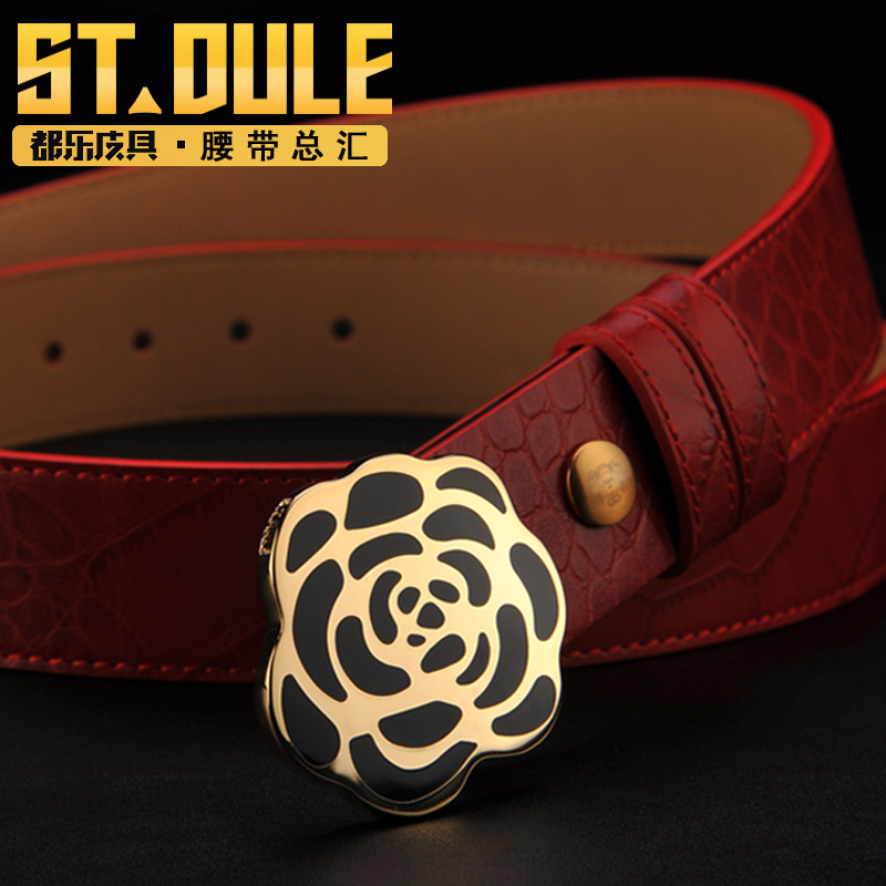 都乐男士黄铜镂空碳纤纹进口牛皮平滑扣个性潮流真皮腰带休闲皮带
