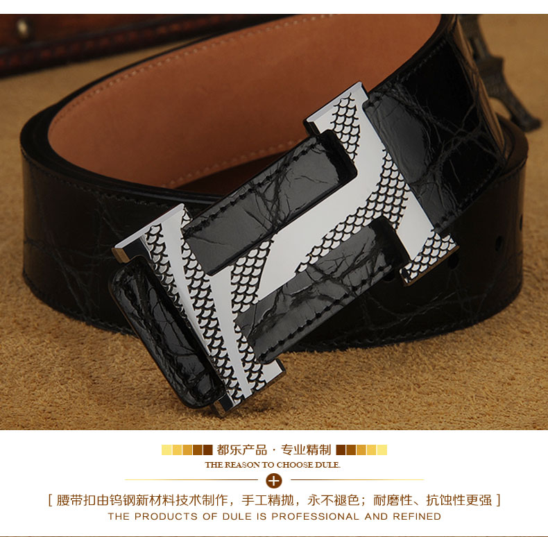 都乐男士黄铜镂空碳纤纹进口牛皮平滑扣个性潮流真皮腰带休闲皮带