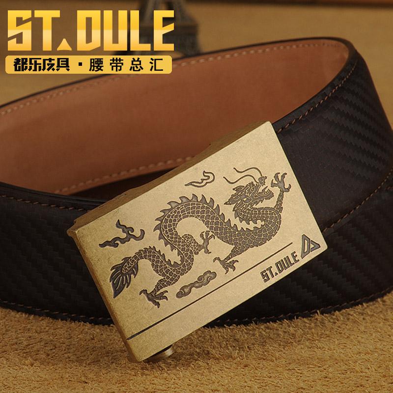 都乐男士黄铜镂空碳纤纹进口牛皮平滑扣个性潮流真皮腰带休闲皮带