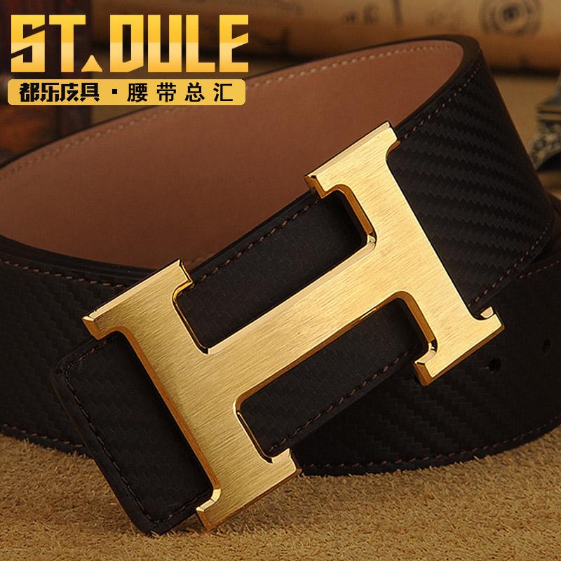 都乐男士黄铜镂空碳纤纹进口牛皮平滑扣个性潮流真皮腰带休闲皮带