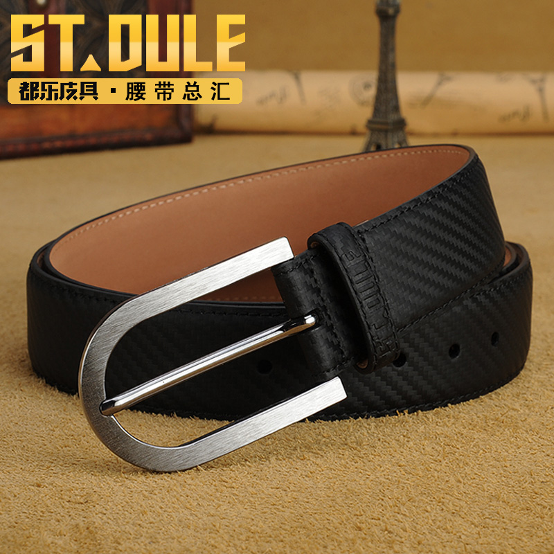 都乐男士黄铜镂空碳纤纹进口牛皮平滑扣个性潮流真皮腰带休闲皮带