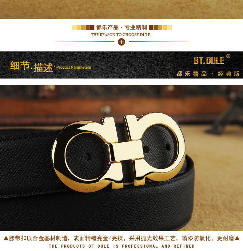 都乐男士黄铜镂空碳纤纹进口牛皮平滑扣个性潮流真皮腰带休闲皮带