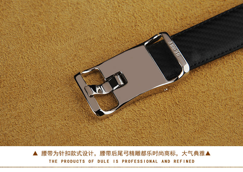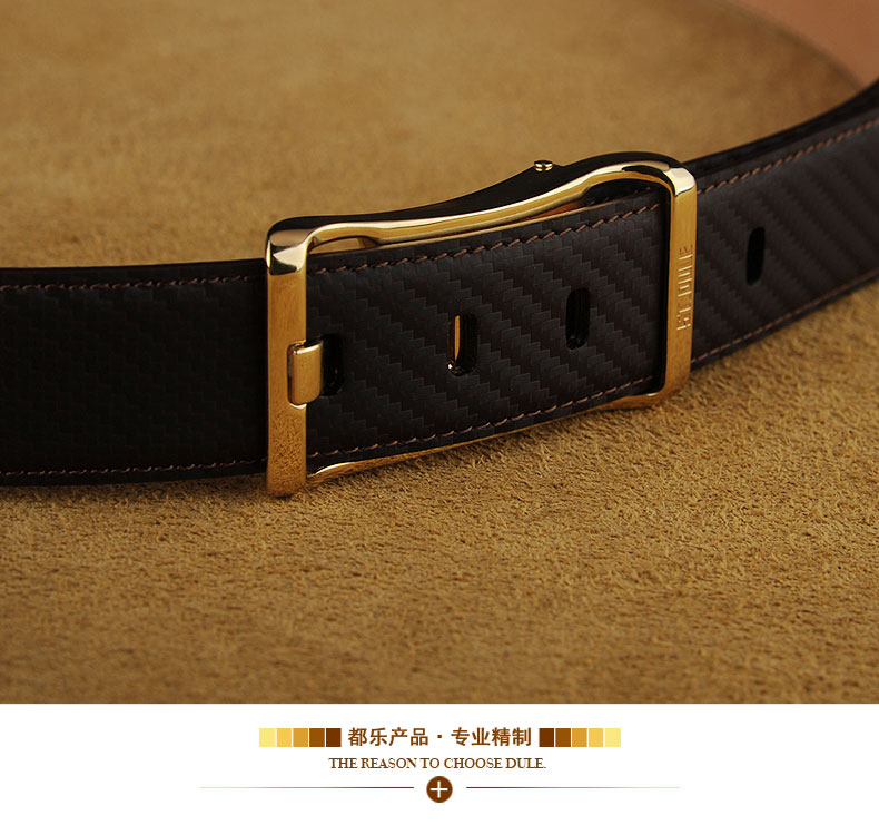 都乐男士黄铜镂空碳纤纹进口牛皮平滑扣个性潮流真皮腰带休闲皮带