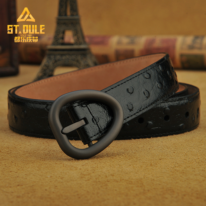 都乐男士黄铜镂空碳纤纹进口牛皮平滑扣个性潮流真皮腰带休闲皮带