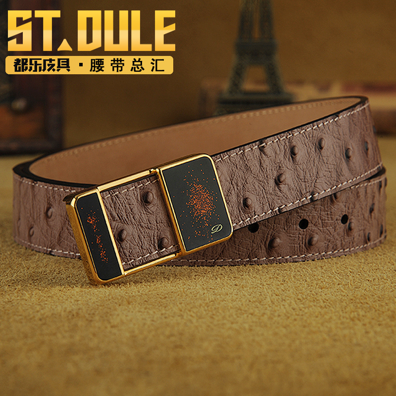 都乐专柜正品鸵鸟纹牛皮女士平滑扣时尚皮带睿智优雅