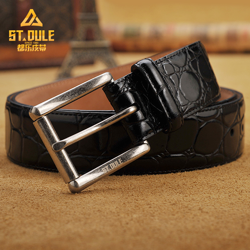 都乐男士合金新款简约针扣头层牛皮皮带个性时尚腰带