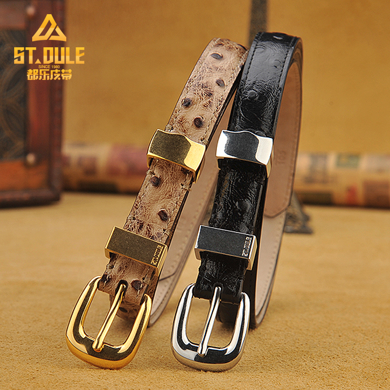 都乐专柜正品鸵鸟纹牛皮女士针扣时尚皮带
