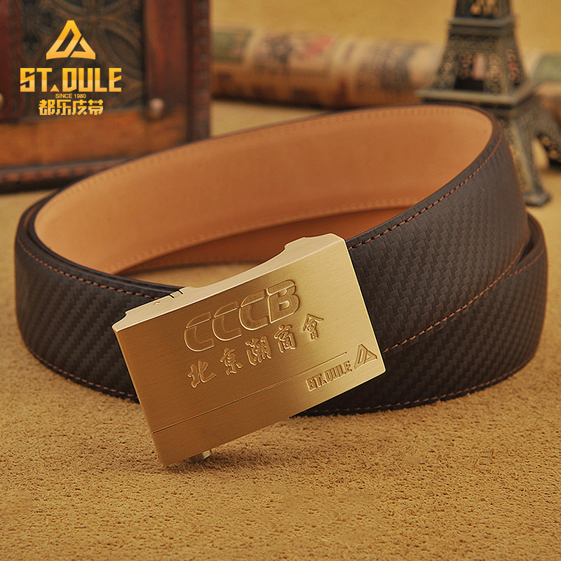 都乐专柜自动扣北京潮商会黄铜扣头进口牛皮碳纤维纹皮带
